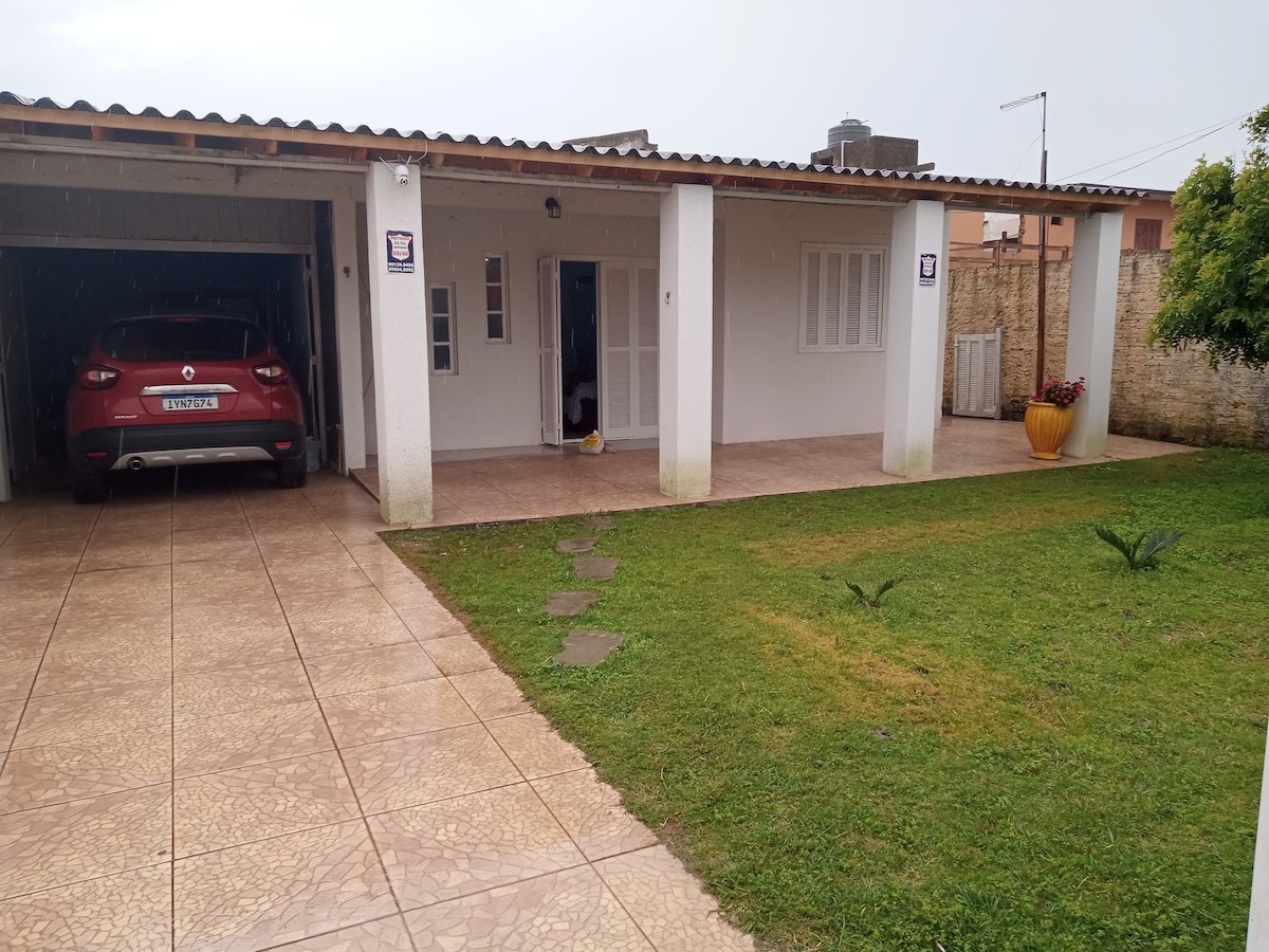 Relaxe com toda a família nesta acomodação tranquila. Casa linda e aconchegante, a 1 quadra e meia da praia. Mobiliada para trazer conforto e praticidade. Amplo espaço para estacionar no jardim, com lindo gramado, cerca e muro. Com sistema de alarme e vigilância. Desfrute de momentos de tranquilidade e diversão com sua família. Itens disponíveis: 2 camas casal, 2 colchões solteiro, 3 sofás,Televisão,Geladeira, fogão, forno elétrico, ventilador, micro-ondas,cafeteira,torradeira, cadeira de praia