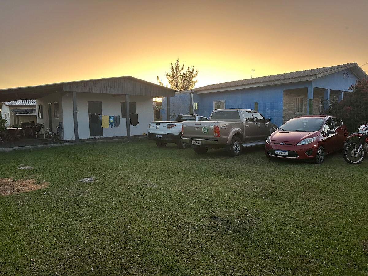 Relaxe com toda a família nesta acomodação tranquila. Situada entre as praias de Pinhal e Cidreira, com os fundos da casa a beira mar, com um quiosque particular para você fazer seu churrasco olhando as ondas! Próximo ao centro destas duas praias, com mercados, padarias e bazares nas proximidades. Acomoda até 10 pessoas, ideal para relaxar da vida atribulada da cidade.