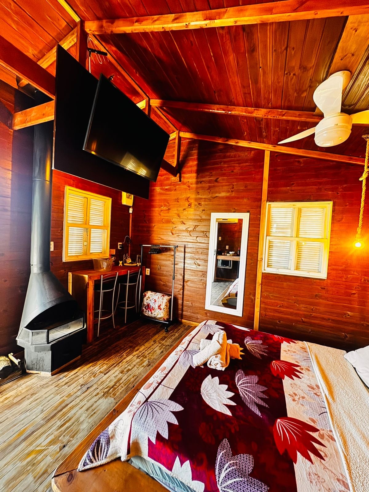 🌲✨ Venha viver momentos inesquecíveis em nossa cabana Éden. Um refúgio cercado pela natureza, ideal para quem busca paz, liberdade e boas energias. Aqui você escolhe como aproveitar: traga seu pet para curtir ao seu lado, venha com seu amor, família,amigos ou simplesmente sozinho para relaxar. O Espaço tem Wi-Fi, sistema Alexa , smart TV , hidromassagem, lareira externa , teto panorâmico .