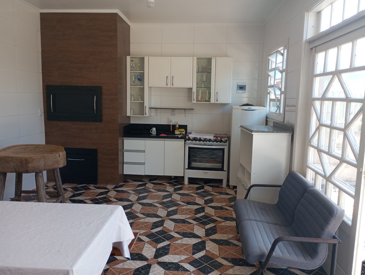quarto 1 com uma cama de casal e uma de solteiro, quarto dois com uma cama de casal, na sala dois sofas que abrem e viram cama de casal, pátio amplo com churrasqueira campeira de tijolos no chão, local e familiar tranquilo com ótima vizinhança silenciosa de forma que não se Coloca som alto, 15/20 minutos de caminhada para chegar ao centro, casa totalmente mobiliada, precisa levar forro de cama e travesseiro.