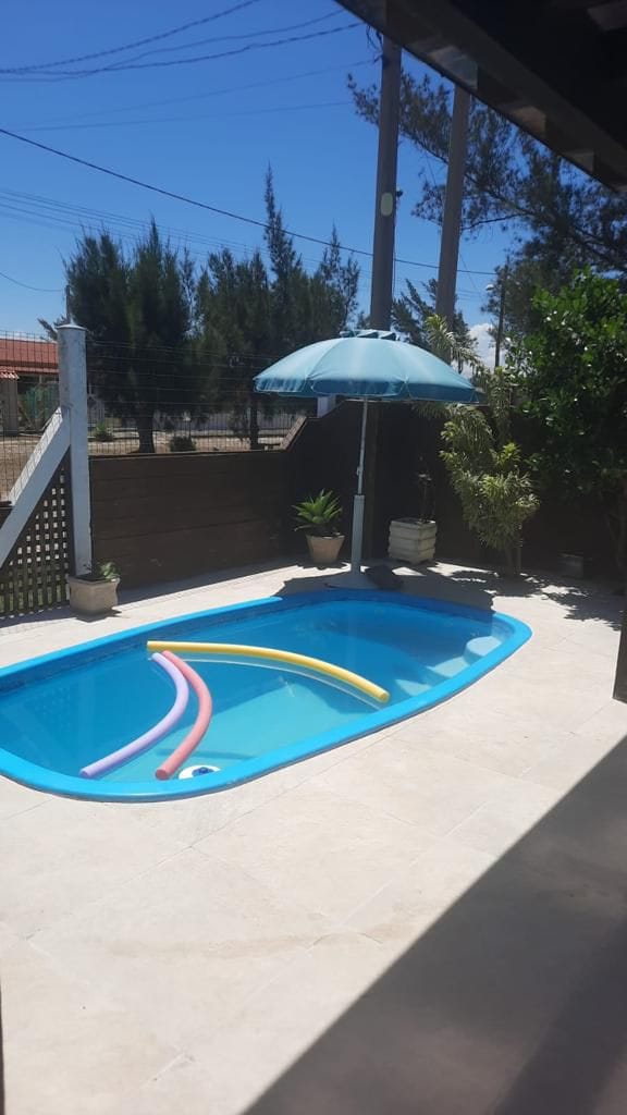 Casa ampla e super confortável na quadra do mar, na Praia do Magistério (Balneário Pinhal), muito próxima à praia. Dispõe de um pátio grande, em terreno todo cercado com piscina e com pinheiros que fazem sombras deliciosas. A casa oferece Wi-fi e cozinha equipada com eletrodomésticos e churrasqueira. Junto à cozinha, está a sala de estar, onde há TV com alguns canais. Todos os quartos possuem ventiladores. Lembre-se: a voltagem é 220v e não oferecemos toalhas nem roupa de cama.