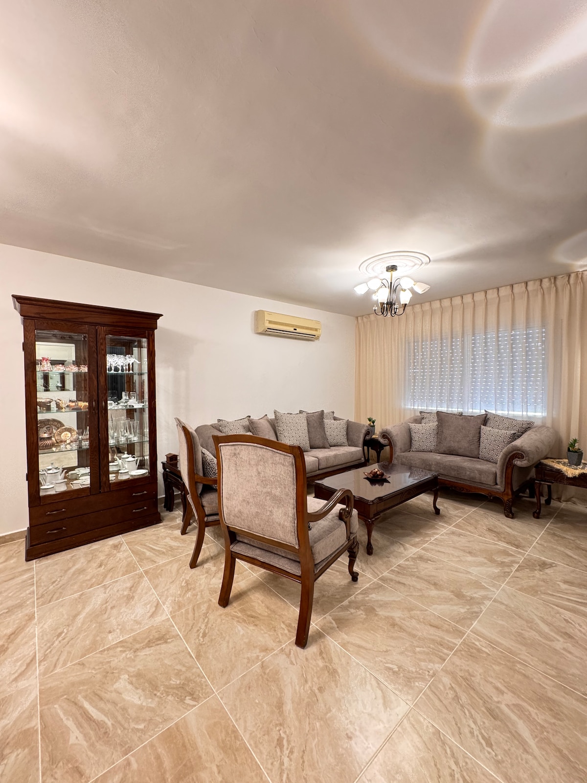 Elegant 3BR apartment in Tlaa Al Ali, Amman – near Sultan Market. Located on the 3rd floor of Al-Insaf Bldg with elevator & 24/7 caretaker. Features 5 beds, stylish living room, dining for 8, fully equipped kitchen (oven, microwave, fridge, etc.), 2 clean bathrooms with toiletries, AC, fans, fast Wi-Fi, TV, washing machine & great view. Complimentary tea, coffee & essentials. Clean, spacious, close to shops, cafes & public transport. Ideal for families or business travelers!