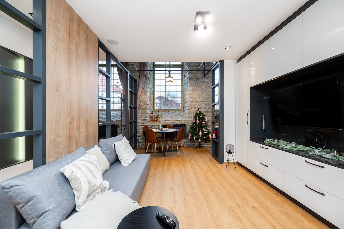 This 40 m² studio is set within Tallinn’s medieval City Wall – a quiet and cozy retreat for travelers seeking history and privacy. Surrounded by limestone and brick, the space stays cool in summer and peaceful year-round. Tucked in a calm corner of the Old Town, it’s perfect for couples or solo explorers. Enjoy a compact kitchen, high-speed Wi-Fi, and a truly authentic Tallinn stay.