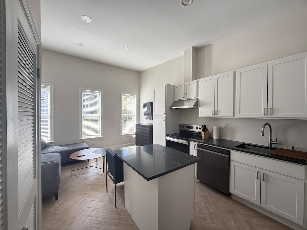 This is a spacious lower level of a newly built home. This private guest area has a lounge, dinning, and kitchenette in addition to a bedroom and a bathroom. Guests share only the main entrance of the townhouse with owners who live upstairs. This private decorated space includes a smart TV, comfortable seating, dining for 4, microwave, coffee maker, full refrigerator, toaster/air fryer, queen bed, wardrobe & dresser. Washer/dryer available upon request. Please review house rules before booking