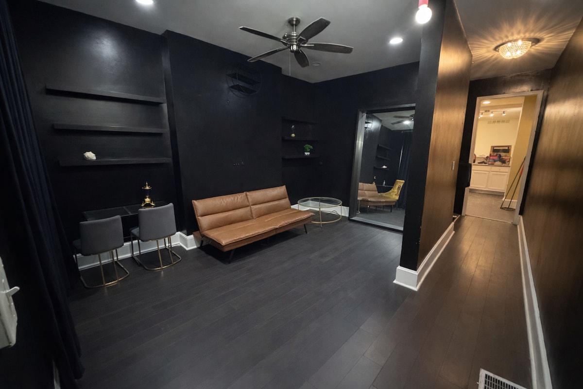 Rare gem with roof top lounging area with an amazing view of the city. Tiki bar in the downstairs patio, jacuzzi in master bedroom. Be transported to the land of Aphrodite as you relax in the cozy Greek themed master bedroom. Whether you want to unwind for a peaceful relaxing time in the jacuzzi or have good times with good friends our cool unique vibe will fit whatever it is your looking to do. Walking distance from M & T stadium, Horseshoe Casino, Top Golf, & the harbor.
