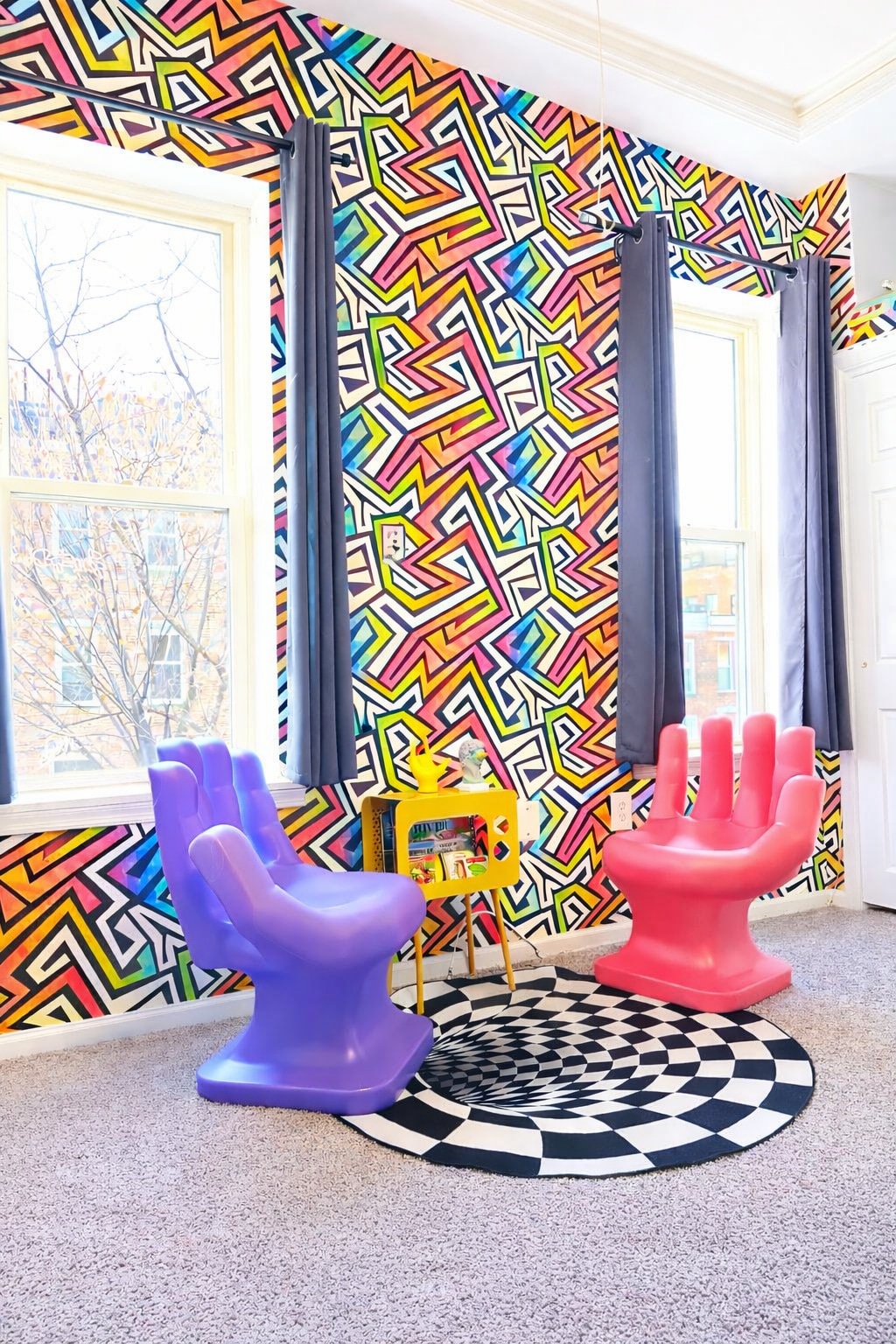 Life with Art! This property doubles as an art gallery (w/ rotating exhibits) in the heart of Fells Point, Baltimore! Great for vacation, business, conferences, internships. Walking distance to dozens of restaurants, bars, shopping, Aquarium/Inner Harbor, Harbor East, Canton, and tje Marriott Waterfront Hotel & Conference Center. Just 1.2 mi away from Johns Hopkins Hospital, 1.3 mi from the Baltimore Convention Ctr, 1.5 mi from Stadiums and 2.6 mi from Penn Station.