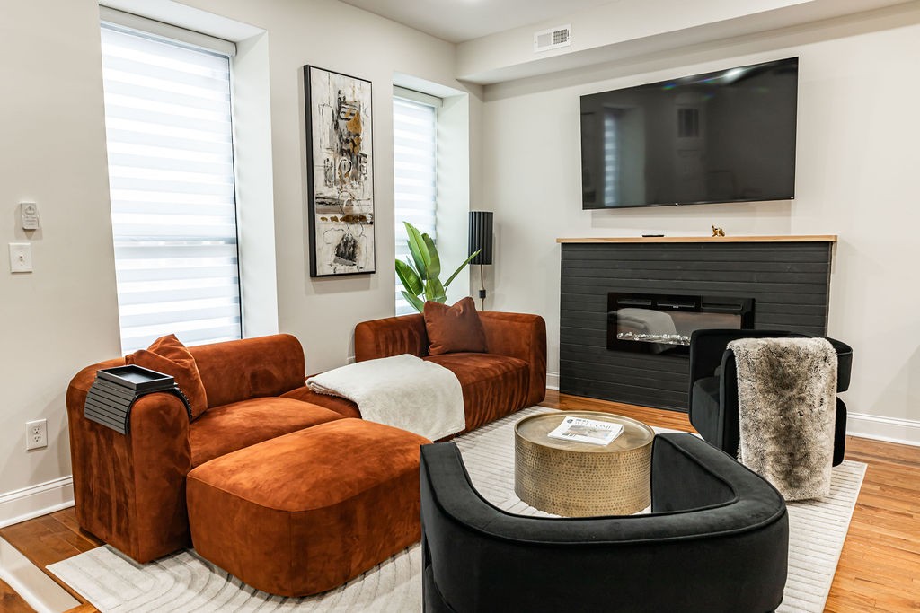 The safest and most central location in Baltimore. This smart townhome is within walking distance to Baltimore’s Best — restaurants, clubs, Fell’s Point, and the Inner Harbor. There are 2 bedrooms with plush queen beds, large wardrobes for your clothing, and 2 full bathrooms. One room has a romantic, four-poster bed with canopy. The other bedroom is fun and sleek, with a 60” flatscreen TV (65” HDTV in the living room). Relax on the spacious rooftop deck with 3 couches and seating for 11 people.