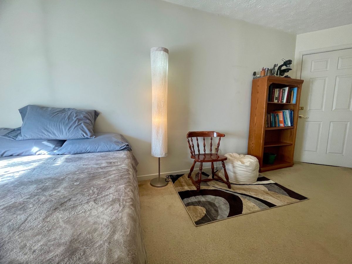 Artists and creatives are welcomed! Stay at our 1920 rowhouse with its mix of 70's era textiles and contemporary style. Please enter the shared hallway and find the entrance to your apartment on the right. Across from the coat rack. Moon Base (ment) is the lower level private full apartment, with fully stocked kitchen w/electric cooktop dishwasher, garbage disposal, comfy double bed, private bath w/shower, laundry and your own patio off the kitchen and access to small patio with lighting.