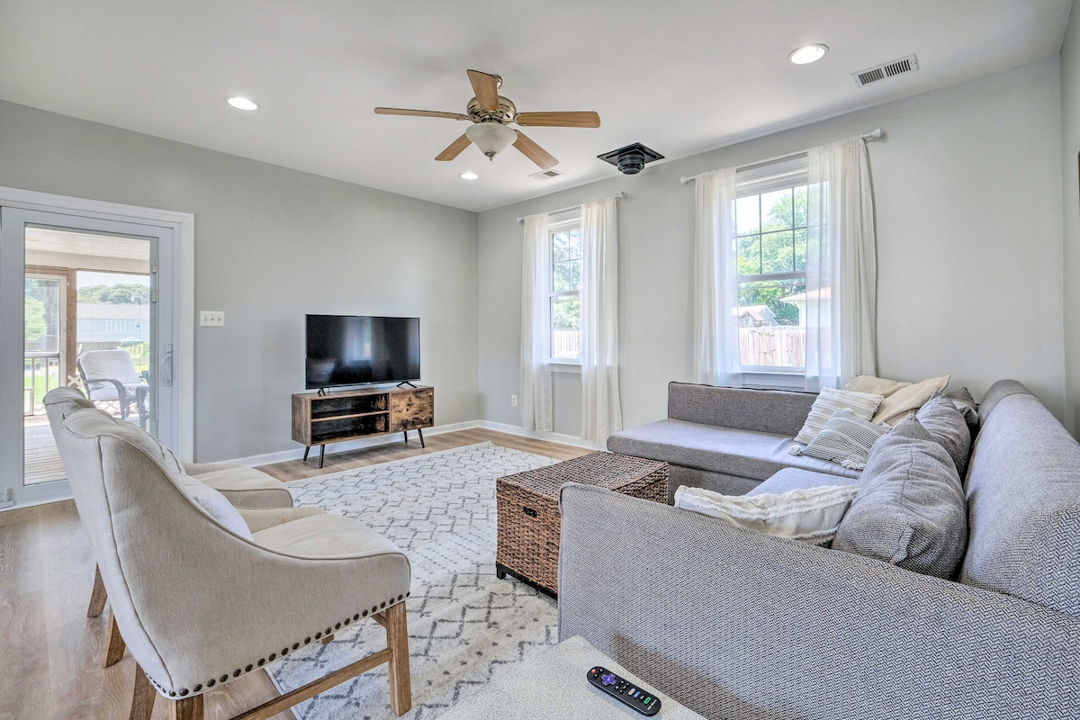 Relax at this large 7-bedroom spacious top-quality home that is ideal for large gatherings where all can be together in one place. All will be comfortable in large open areas both inside (4,125 sq ft, tall ceilings) & outside (1 acre). Enjoy a huge first-class kitchen with all the granite countertop space, cooking & serving supplies you will ever need. Enjoy the large fenced-in backyard with pool, grill, & fire pit. Ideal for family events, quiet getaways, sports teams, & business meetings