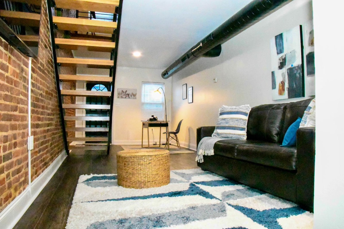 Rent a unique studio apt in Fells Point! This is no cookie-cutter Airbnb. We converted a portion of our home, a 19th century construction & mid-20th century Fells Pt bar, into a 500 foot apartment w/private entrance, bathroom, work & living space. The apartment is near Fells bars & restaurants, Canton, Hopkins, the harbor, Patterson Park & downtown. 2 miles from stadiums. There is a 6 in. incline from sidewalk to entrance. Access ramp available. No steps in studio. We only host via Airbnb.