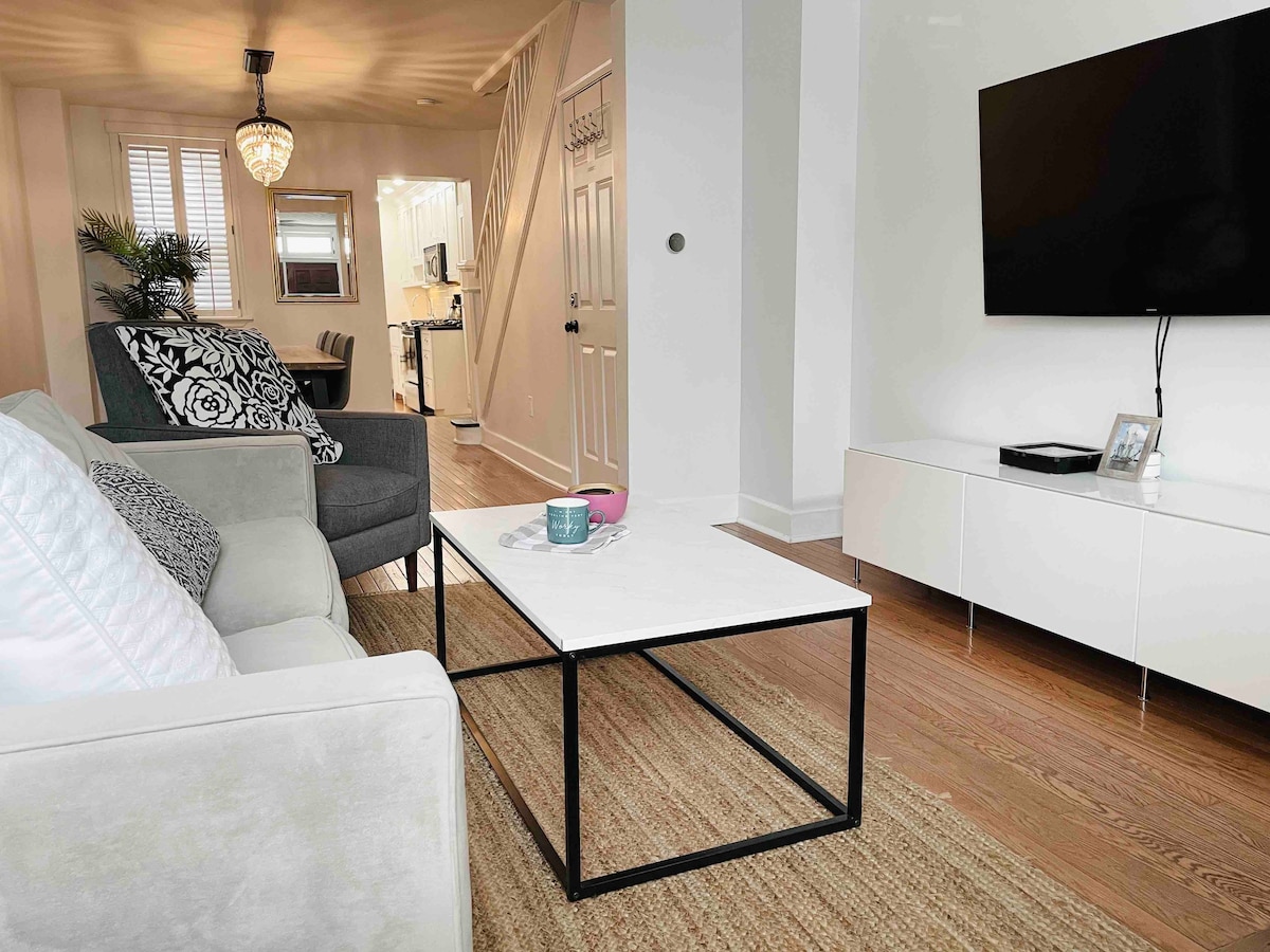 Ditch the hotel & unwind in this peaceful, curated courtyard townhome—perfect for solo travelers, couples, or friends. A cozy townhome based in the heart of Charm City! First Floor 🛏️ Full sleeper sofa in living room 🍽️ Fully equipped kitchen 🚿Half Bath Second Floor 🛏️ Queen Bed 🚿Full Bath 🧺 In-unit washer & dryer Lets not forget! 🌿 Quiet shared courtyard patio for fresh air & coffee 📍 Walk to Fells Point, Inner Harbor, & Little Italy 🍴 Near top-rated restaurants, shops & bars