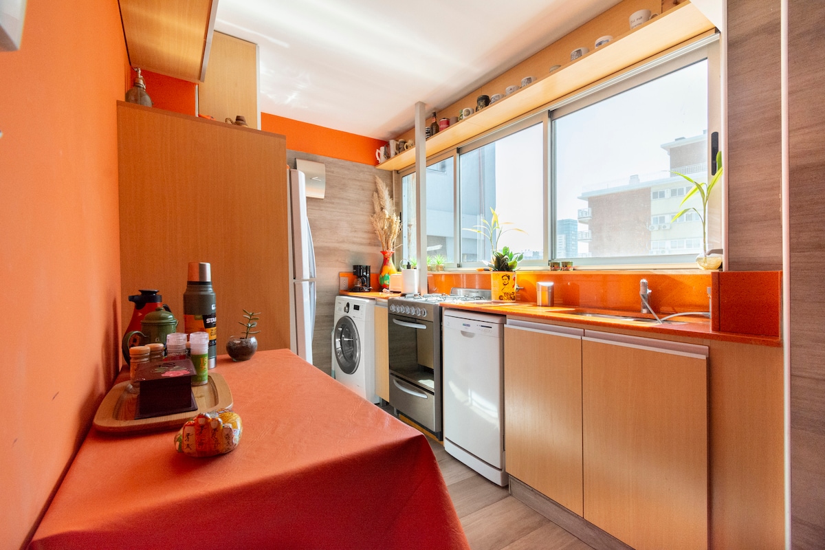 Welcome to your home in Palermo Hollywood! 24/7 check-in and check-out for your convenience. Enjoy a spacious apartment with 100 Mb Wi-Fi, cable TV and Smart TV, a fully equipped kitchen, a desk, air conditioning, and a laundry room in the building. Relax on the balcony with a safety net. Located in a tourist area, just a few blocks from Palermo station (line D) and bus stops. Surrounded by restaurants, cafes, bars, Distrito Arcos, and shops.
