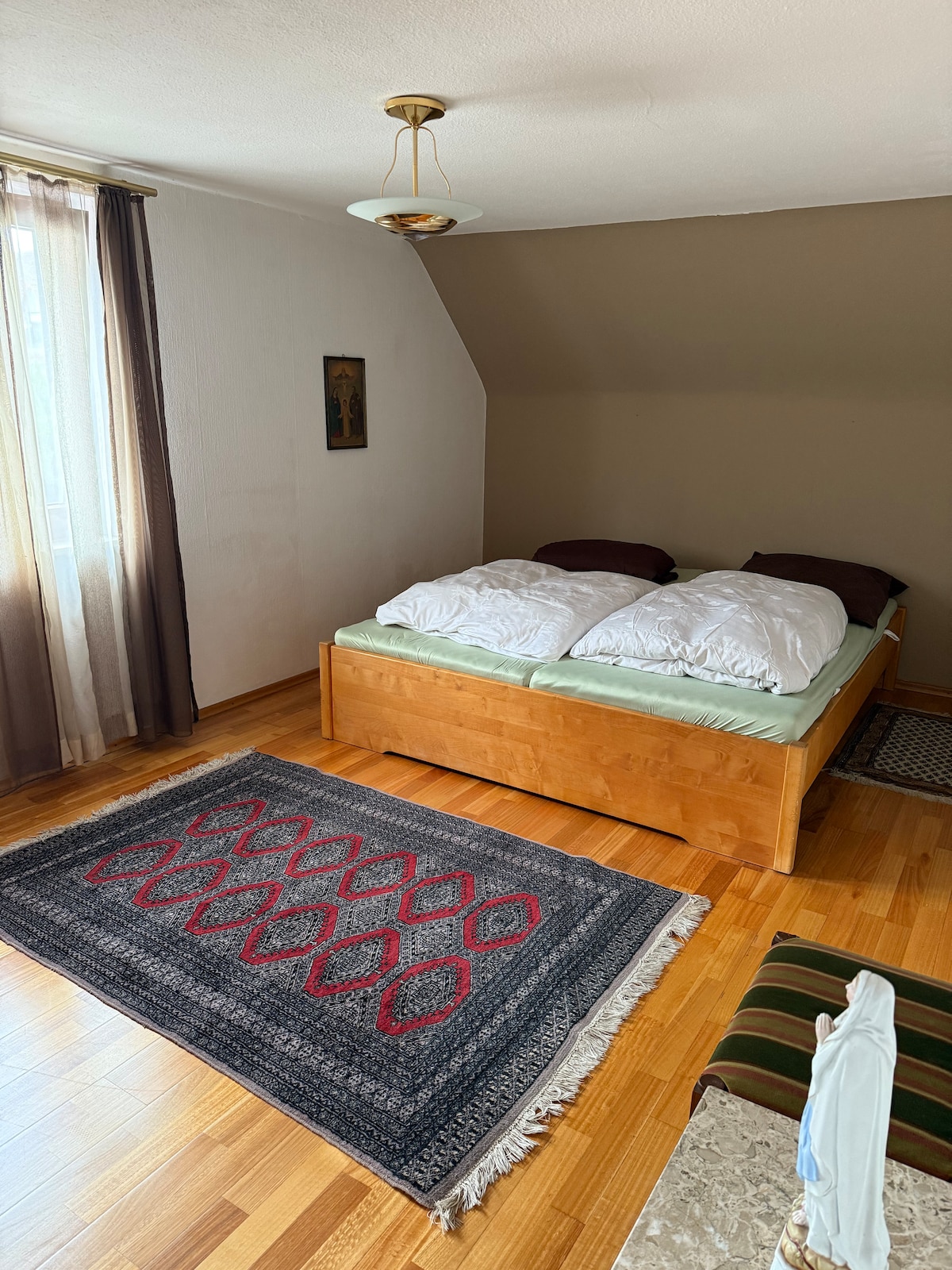 A quiet ground-floor apartment in a large detached house with seperate entrance and private parking. A large studio with double-bed , sofa , armchairs, TV , WIFI, a selection of DVDs and books plus a small work-table. Seperate kitchen and bathroom. A high-chair and baby-bed are available on request. An Italian restaurant , bakery, pharmacy and supermarket are within walking distance. A men's bicycle is available to rent. Local bus service to Biberach (Line 2)
