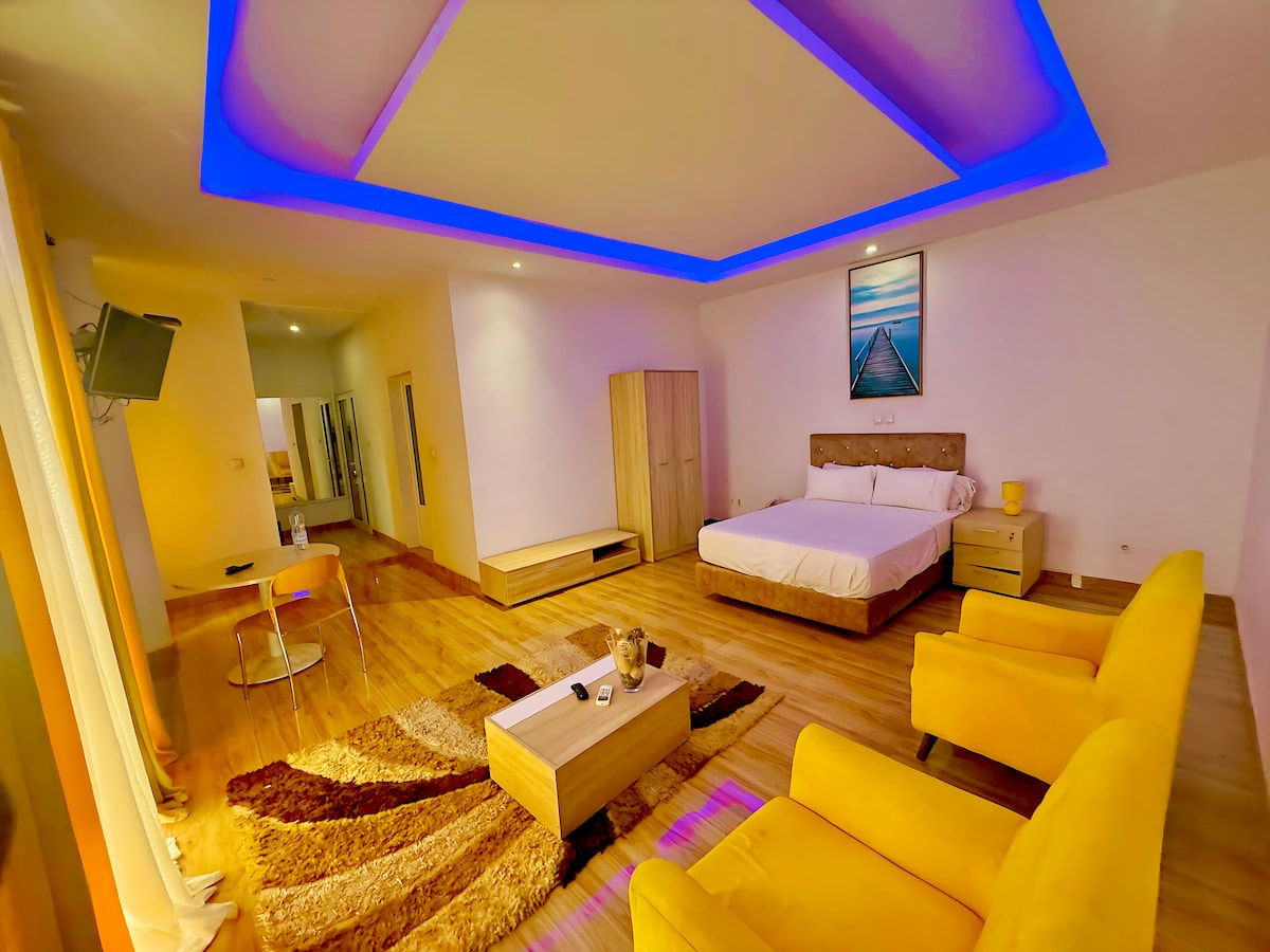 Ce magnifique appartement tout neuf sis proche de la Tour de l'Afrique à Bamako sera agrémenté vos séjours tant professionnels que personnels. Restez dans un immeuble paisible, accueillant, chaleureusement décoré avec goût, . Spacieux, élégant et unique, vous vous sentirez comme dans un rêve. Plus d'inquiétude en cas de coupure d'électricité, les panneaux solaires prennent le relais pour les luminaires, brasseurs, Internet, télé.