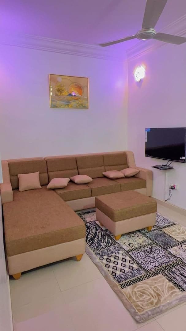 Appartement moderne et lumineux situé au 2ᵉ étage d’un immeuble récent au quartier Golf, Bamako. Il dispose de 2 chambres climatisées, 1 salon avec Wi-Fi haut débit, télévision, table à manger et 2 balcons. Cuisine équipée (frigo, micro-ondes, gazinière, fer à repasser). Eau chaude 24h/24. Grâce aux panneaux solaires, profitez d’électricité même lors des coupures. Gaz inclus, électricité à la charge du client. Restaurants et taxis au pied de l’immeuble.