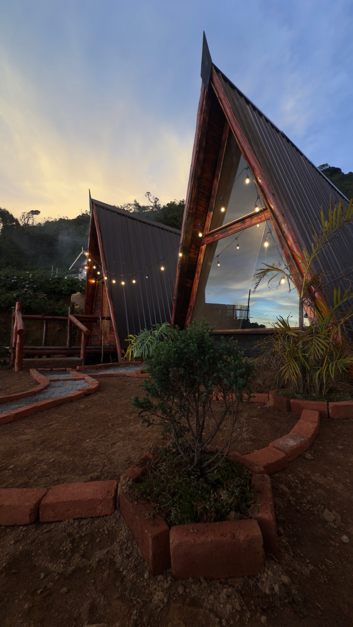 First A Frame Cabin experience in Ella, Sri Lanka. Tea Cabins is your perfect hideout in a lush green tea estate. Isolated & secluded, our guests never need leave the cabin, or meet anyone! Enjoy the unique experience, get away and focus on each other in the private pool with a fire pit with uninterrupted views. Watch train passing from the cabin and in 25 min rail walk you will get to famous Nine Arch Bridge. This is your perfect hideout to break off from the hustle and bustle of busy Ella!
