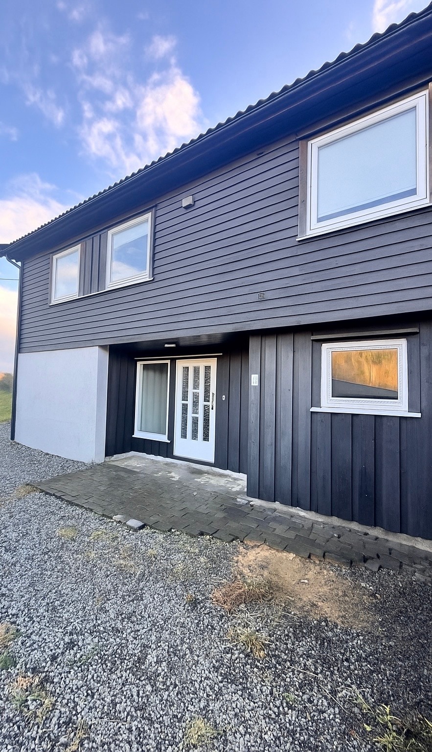 Slapp av sammen med hele familien på dette fredelige bostedet med Panorama utsikt utover fjorden, gangavstand til forretninger, spisesteder og til sjøen med badeplass. Det er stor hybel i 1.etsj., egen trapp og inngang, 91 kvadratmeter, 3 soverom, stua med sove sofa og 3 skinn stoler, Peis ovnen, varmepumpe. På badet har servant, dusjkabinett, opplegg for vaskemaskin og tørketrommel, kombinert vask og tørk, kjøkken og lite rom ved siden, gratis parkeringsplass. Røyking er kun tillatt utenfor.