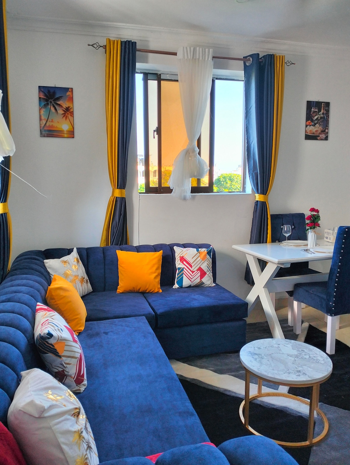 Experience the best of beachside Nyali in this beautifully designed 1 bedroom apartment in the iconic baobab waved development. With stylish interiors, top-tier amenities, and access to the beach just steps away, it's your perfect escape-whether for business or leisure. Wake up in one of Nyali beach’s most prestigious addresses! Things to note - The 2 couch beds are 3.5 by 6 feet. - Swimming pool & parking free - Bed linen towels provided - Air conditioning plus Fan option -Gym free