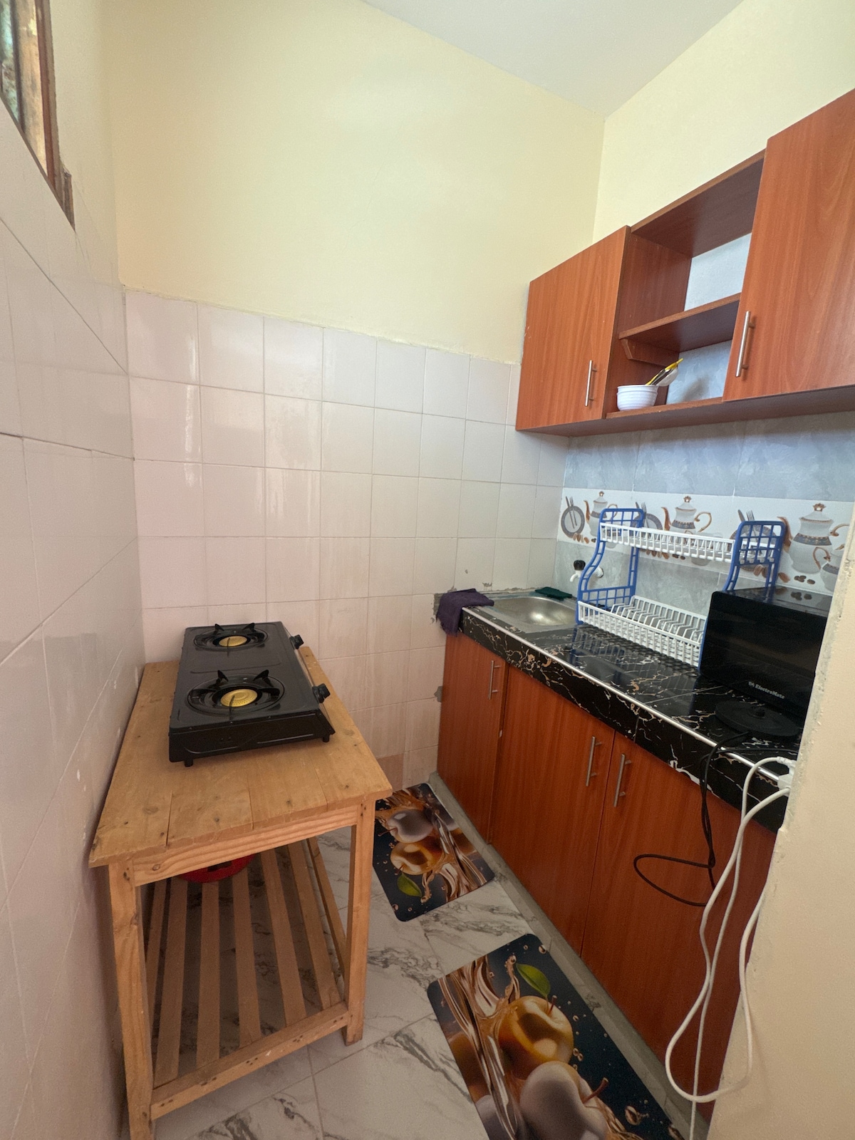 Located in Nyali, Mombasa, 15 minutes walk to the beach, close to malls, top attractions, and restaurants. This modern, private apartment features AC in the bedroom, fan, fast Wi-Fi, Netflix, hot shower, washing machine & a fully equipped kitchen. Perfect for solo travelers or couples. AC usage is prepaid and charged separately. Cleaning on request at KES 500. Beddings and towels changed for free on request. Quiet, safe area for a relaxing stay. Enjoy sunset views from the balcony.