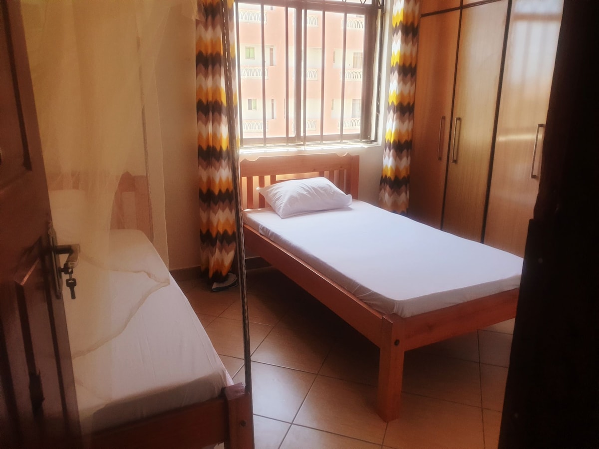 This fully furnished 3 bedroom apartment located in a serene and plushest area in Nyali.A walking distance to City mall & Naivas Shopping Center. Long white sand beaches, supermarkets, banks, entertainment places and many other amenities are within reach. Features include *Self catering *Master ensuite *AC on all rooms and sitting room *WIFI *Free internet *Sea view *Lift *Ample parking *Swimming pool *Spacious balconies *Backup generator in common areas *Security 24/7 *Near the beach