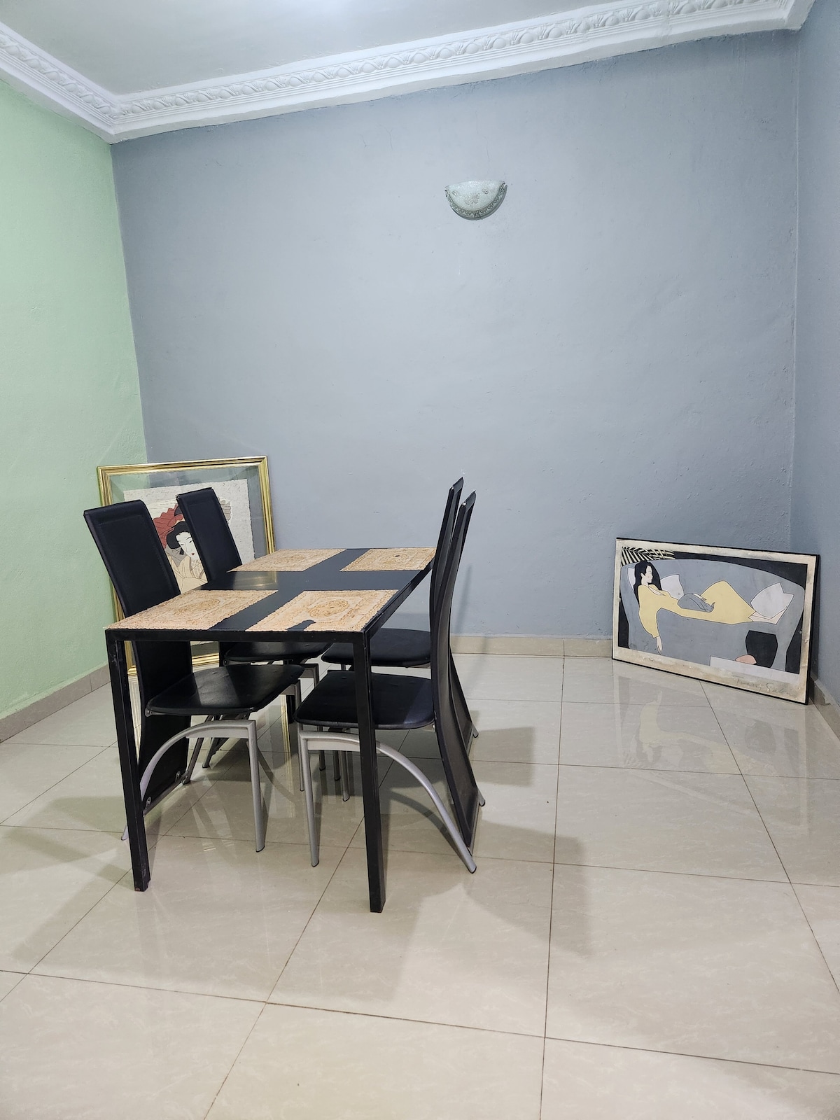 Appartement cauzy situé au dernier étage d'un immeuble nouvellement construit dans un quartier calme et sécurisé, à deux pas de la route principale de l'aéroport. Disposant de réseau d'eau chaude, deux grands balcons, un pur délice.