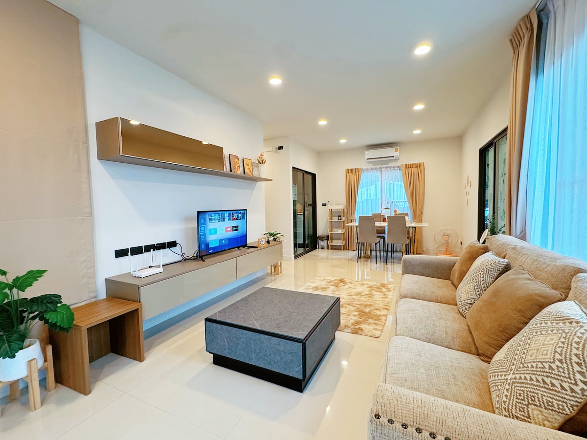 ✨ Elegant resort-style home for rent in Bang Khun Thian (Rama 2) 🌿 3 Bedroom, 4 bathroom, fully furnished with spacious living area, private garden, fast WiFi, Small kitchen but fully equipped, and 2 parking (space for 1 host car). Located in a peaceful, low-density gated community with 24/7 security, pool, gym & clubhouse 🏡🏊♂️ Perfect for families or expats seeking comfort & tranquility. Near Central Rama 2 , fresh markets ♻️ Clean & orderly waste system. Grab, LINE MAN & Bolt supported 🚗