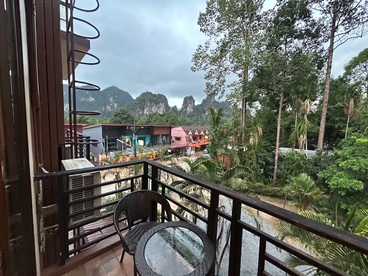 We are Centrally Located on The Main Road where Bars & Restuarant Open. The Scenic Forest View is all around. Klong Sok Cannel is walking Distance. Bus Stop is 550 Meters Away. Mountain View can be seen from Main Road. Bamboo Rafting is 600-800 THB from Front Desk along with Elephant & Walking Tour
