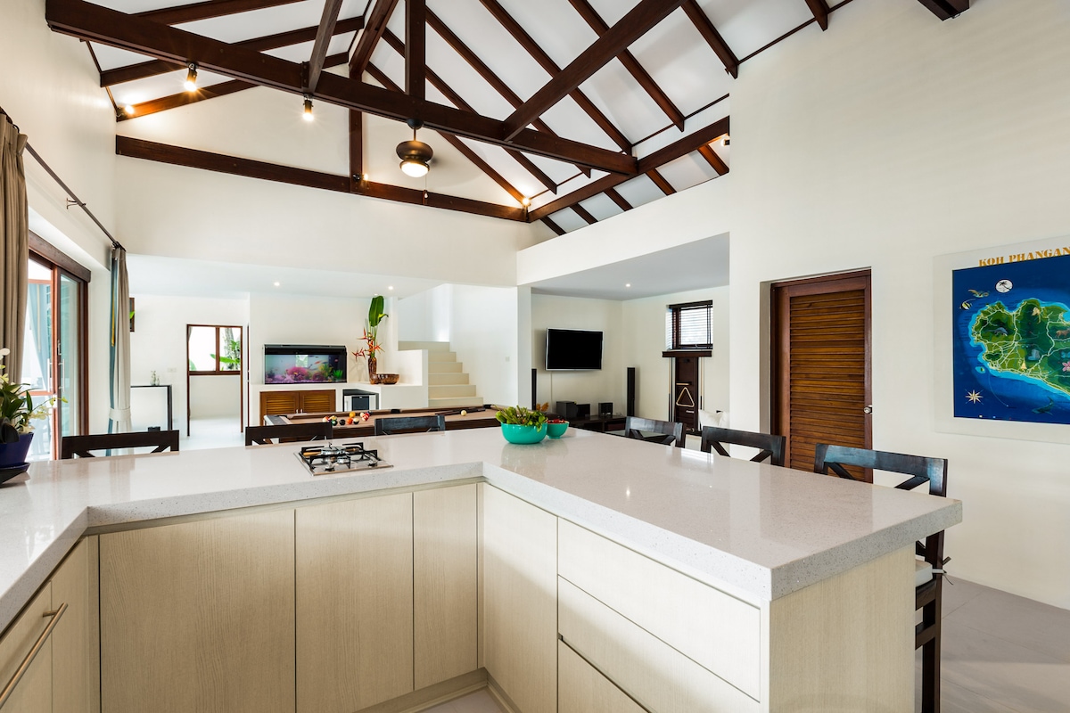 Experience a brand new architectural gem! You’ll love: ♥ Premium location in Choeng Mon, 7-10 min walk to Kimpton Hotel, beach & restaurants ♥ ♥ Open-plan dining/living ♥ ♥ Luxury marble-style kitchen w/ breakfast island ♥ En-suite bathrooms w/tubs ♥ ♥ 4M tall ceilings ♥ ♥ Large private terrace & seamless pool ♥ ♥ Poolside bar area ♥ ♥ Daily fresh breakfast included ♥ ♥ Free round-trip airport/pier transfers & parking ♥ ♥ Superfast Wi-Fi ♥ ♥ Hosted by Airbnb Superhost ♥