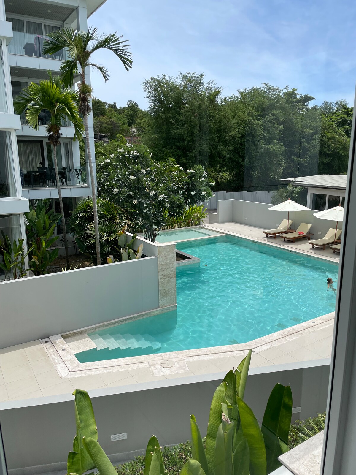 带大型游泳池的单间公寓