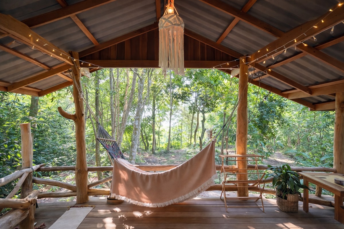 A hidden sanctuary deep in the forest. This unique home offers total privacy, fresh air, a peaceful atmosphere and the sound of nature. A spacious terrace catches the breeze, the large bedroom with AC invites deep rest, and the open-air kitchen blends simplicity with nature. In the ground floor, a dedicated space for yoga or exercise enhances the experience. Perfect for couple or solo traveler seeking tranquility and a true escape. Possibility to welcome 2 more persons in the sofa bed.