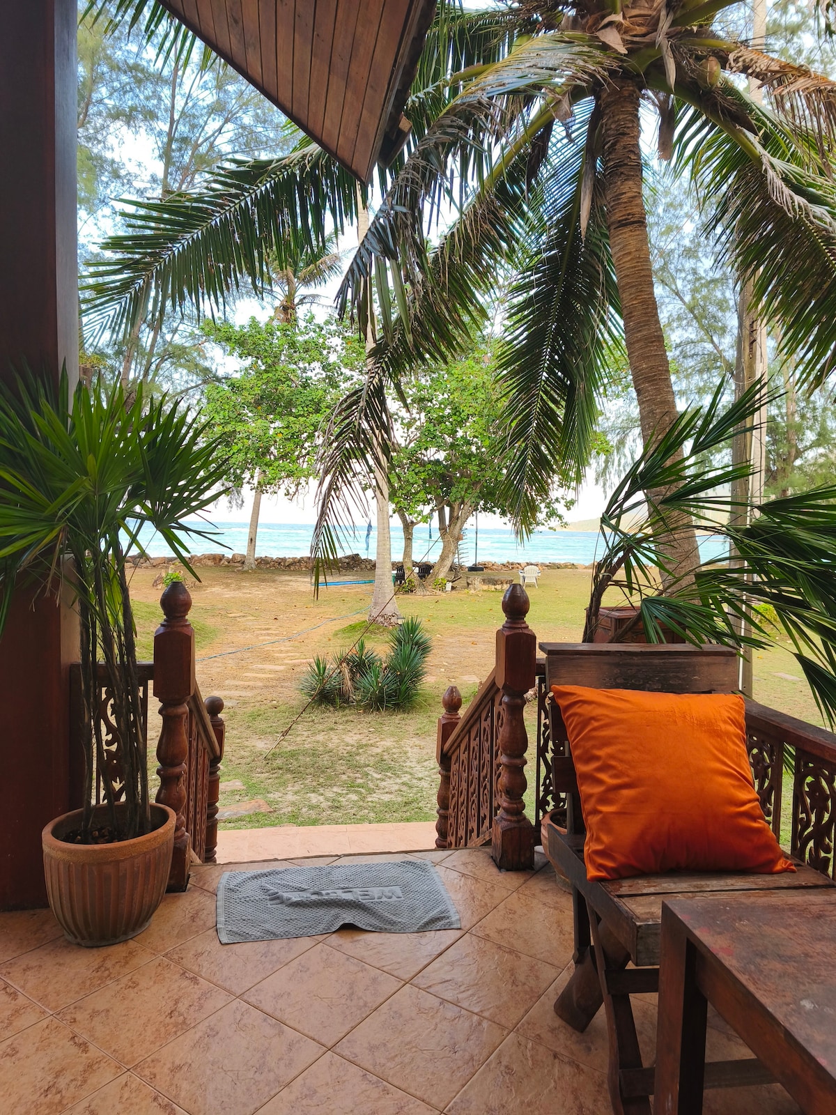 20 steps of beach to the water Stunning sunsets and sunrises Location : Thong Sala Beach, 5 minute's walk to BigC - 1 seafront bedroom, electric curtains, step on the beach, AC - 1 seafront living room, inside fully equipped kitchen, AC and TV - Toilet & indoor and outdoor sea-view shower - Kitchen & utensils, microwave, 2-door refrigerator, gas stove, 2 AC units, fan - Hot & cold shower - Fast WiFi -Terrace