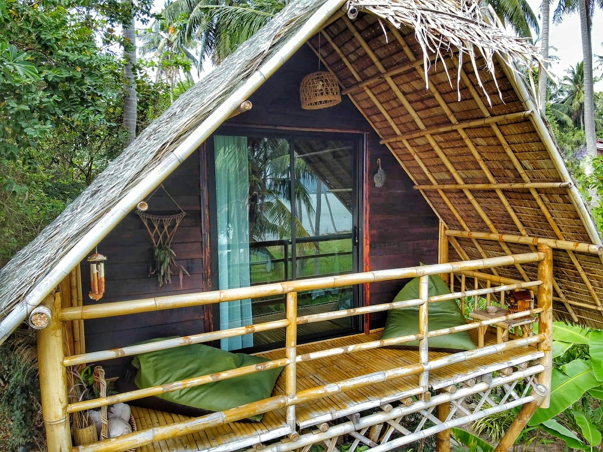 Beachfront ECO Loft bungalow is a secluded eco retreat down a quiet foot path nestled in tropical garden. This unique two level bamboo bungalow is made almost entirely of bamboo and wood and as close to live in nature as you can get. It is simple, minimalist, but elegant design for couples or individual travelers who would like to have and share a natural living experience.