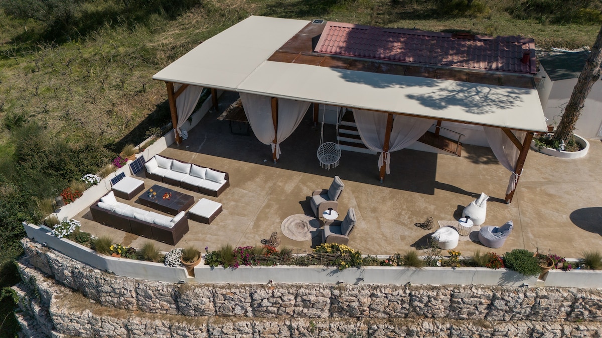 This impressive property is located in Akrotiri, on top of a hill, enjoying clear panoramic views both towards the port and the town of Zante. It is conveniently situated only 4 km distance from the harbor and the main square of the old town. The BoConcept furniture in the living room, the bedroom with COCO-MAT’s natural sleep systems and bedding as well as the soft touch of high quality Guy Laroche linen complete the feeling of a luxury stay.