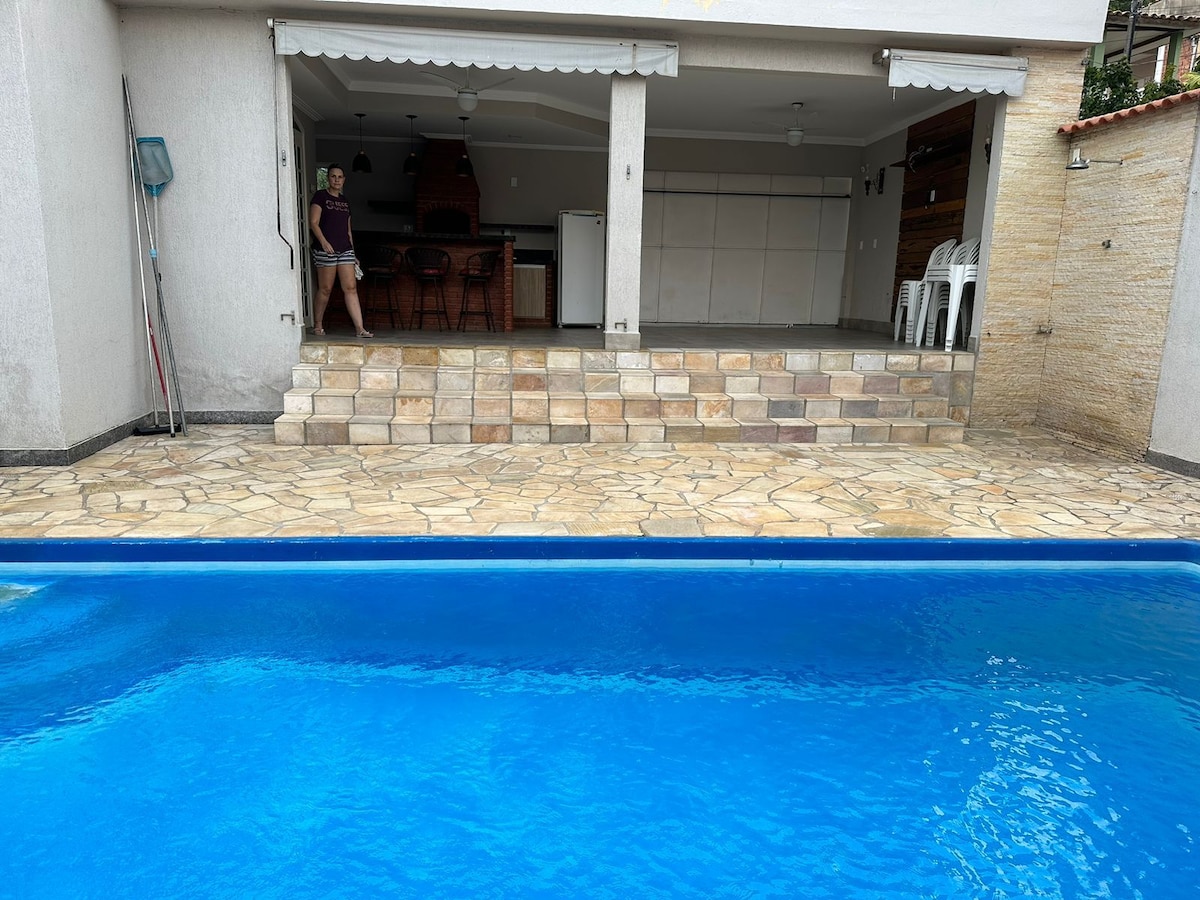 Casa com 4 quartos, sendo um com suíte, cozinha conjugada, 1 banheiro, 1 varanda grande, garagem para 2 carros, área da churrasqueira com 1 freezer horizontal e banheiro, ducha, Wi-Fi e piscina infantil. Cama para 10 pessoas mais 5 colchões de casal disponíveis. Casa em meio a natureza, ambiente tranquilo e familiar feito para você que busca contato com a natureza. A casa se encontra a 5 minutos do centro de lidice, 30 minutos da praia mais próximo de angra e 3 minutos da cachoeira mais próxima