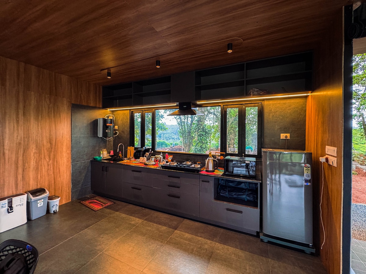 Welcome to Nature’s Peak Wayanad—our Scandinavian-style glass cabin on a private farm with a plunge pool. This 3-bedroom, 2-bathroom property includes a fully air-conditioned main cabin (2 bedrooms, living room & 1 common bathroom), plus a separate air-conditioned outhouse 20 ft away with a king bed and private bathroom. Enjoy a private viewpoint hike and home-cooked meals by our caretaker family (extra cost). The entire space is exclusively yours.