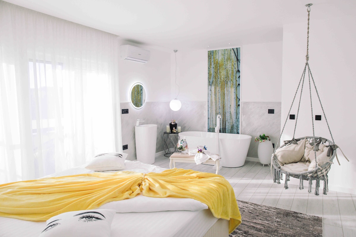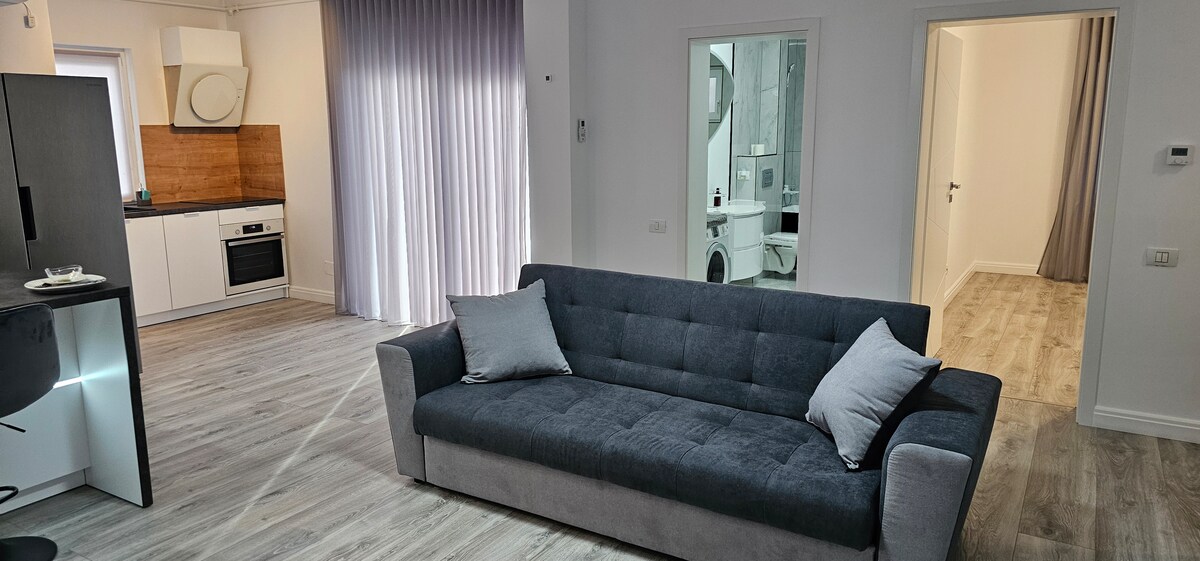 Welcome to your cozy getaway! Kick back and relax in this calm, stylish studio. My charming apartment features a comfortable 180x200 cm bed and is perfectly situated just 400 meters from the Iulius Town (5 minutes by foot) and 1km away from the historical and cultural city center. Iulius Town is the busiest place in the city. Here, you can find any restaurant you want, any café you like, and any store you want to shop in. It's really the place near you want to stay when you come to Timisoara