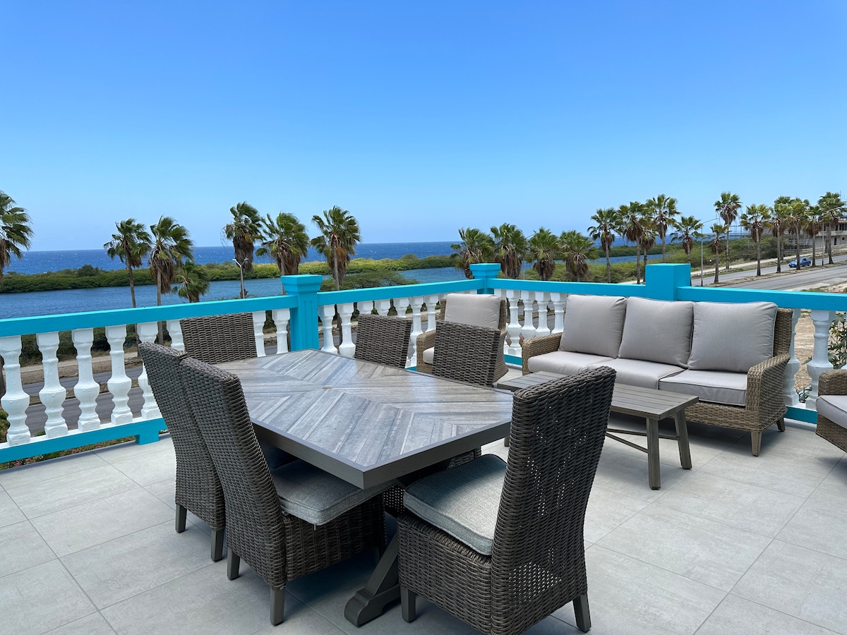 Welcome to your dream getaway in Cas Abao, Curaçao, called Casa Cas Abao. This stunning 8-persons oceanfront villa is a slice of paradise, offering breathtaking views of the Caribbean Sea and all the amenities of a luxury beach resort in the privacy of your own space. This high-end villa, completed in December 2024, is located on the gated resort of Cas Abao.