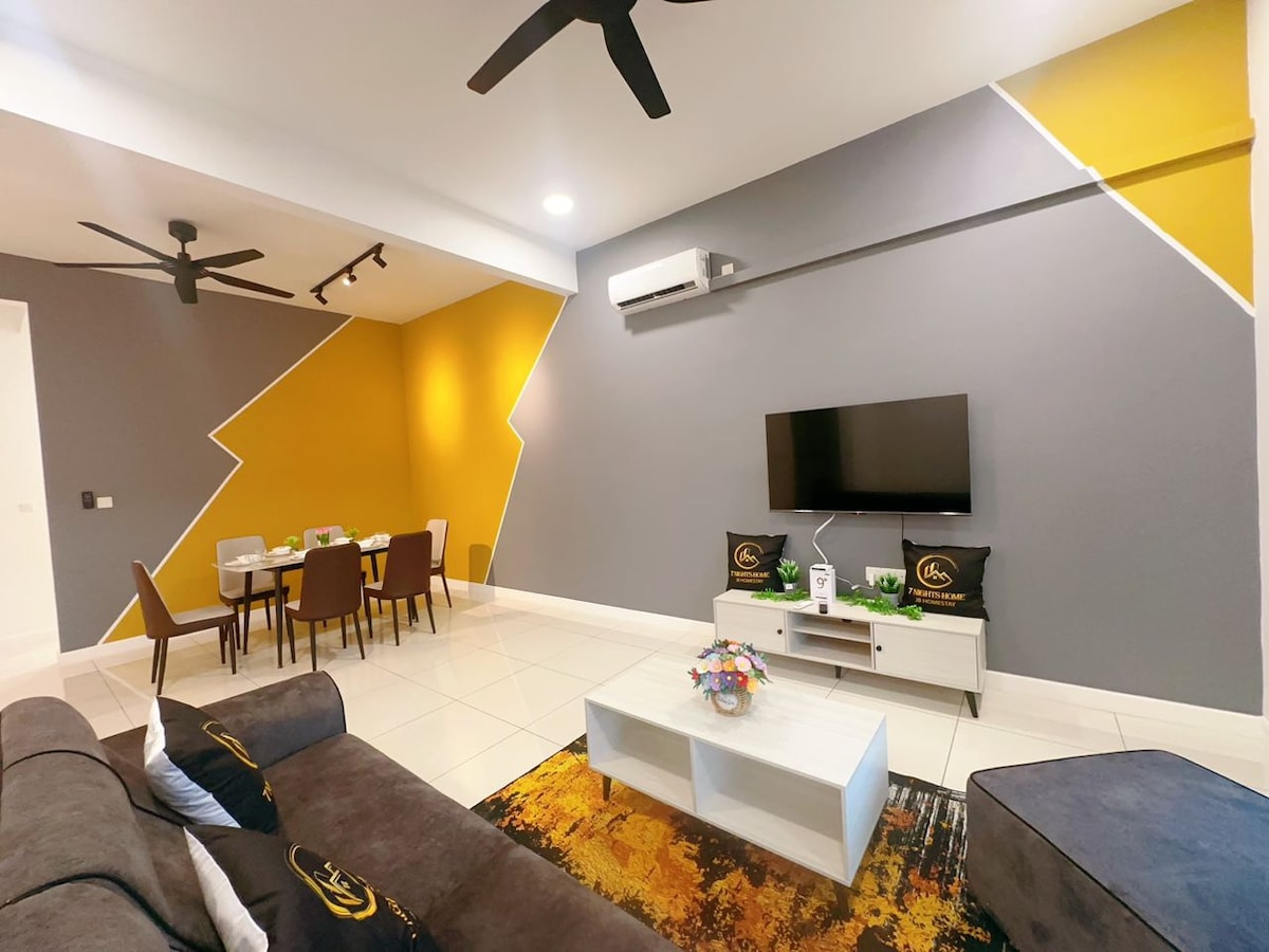 Our unit designed with white & black concept, nearby Toppen Ikea, Aeon Tebrau, Mount Austin trendy cafes and Johor Jaya Street food vendors and restaurants . We provide: *500Mbps high-speed WiFi *fully air-conditioned (5 units aircon) *karaoke & TV box system (Jazpiper) *65inch smart TV *mahjong set & table *board games *simple kitchenware *SK Magic water purifier *towels *shampoo *body wash *coffee & tea