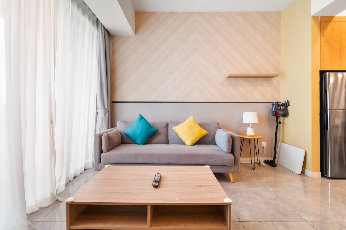 Shah's Arte aspires to make you feel like home. This 515sf is decorated with passion i.e. Kitchenette with large countertop for a nice gathering, a cosy living room for entertainment, a study table against a large window for inspiration… & a queen size bed for a comfy peaceful sleep. & take your time to explore this residential of French retro décor and its numerous instaworthy facilities. welcome to Shah's Arte Home.