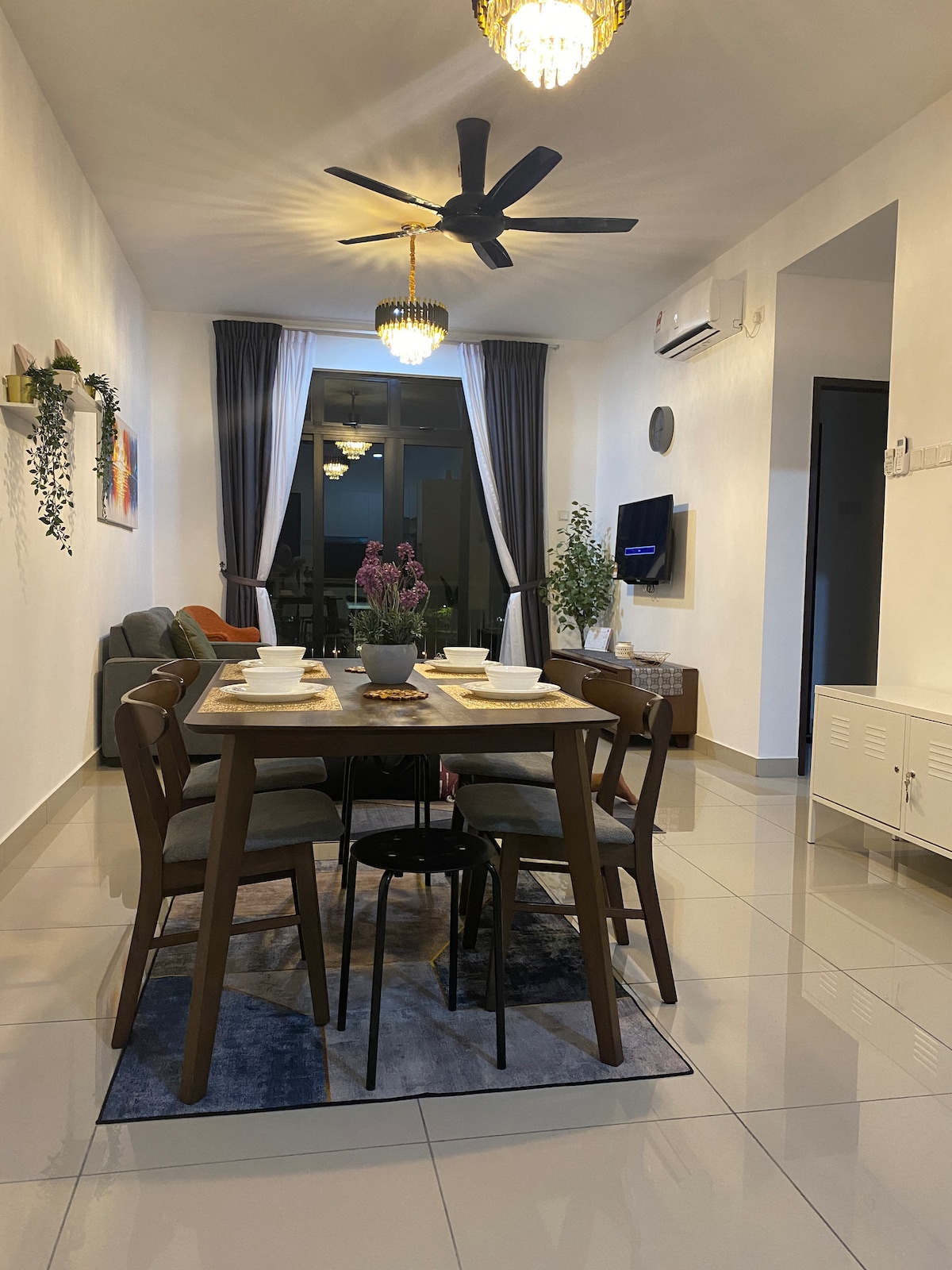 Warm welcome to Putihpelangi Homes. Let me take you to a visionary tour to our place. A fully furnished 3 bedrooms apartment which located at level 4, you can chill at our balcony viewing the swimming pool. A perfect place to be with friends or family either for leisure or your work travel. Located at the centre of Desaru, you can reach lots amenities, delicious eateries and many attractions easily. Beaches are 10 minutes away so have a good escape from the hustle and bustle!