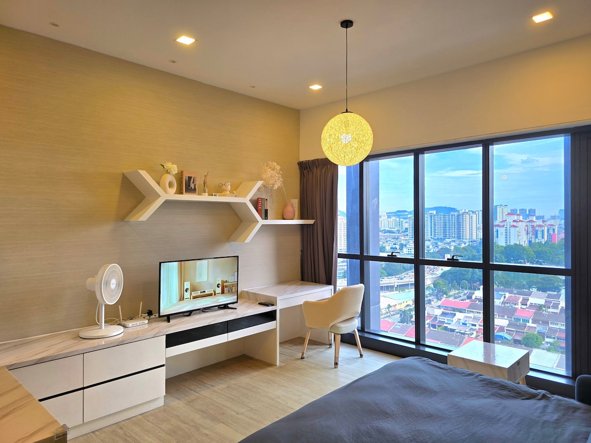 📍Pertama Residency Welcome to my New Bnb - Moonrise City! This studio is newly set up with lots of love, combines contemporary decor with modern amenities and an experience all can enjoy especially Jacuzzi moment with your love & 120” projector screen w/Netflix. This unique place has a style all its own, it offers a cozy, clean, quiet & refreshing stay environment for couples. Come and experience in the new bnb! See you.