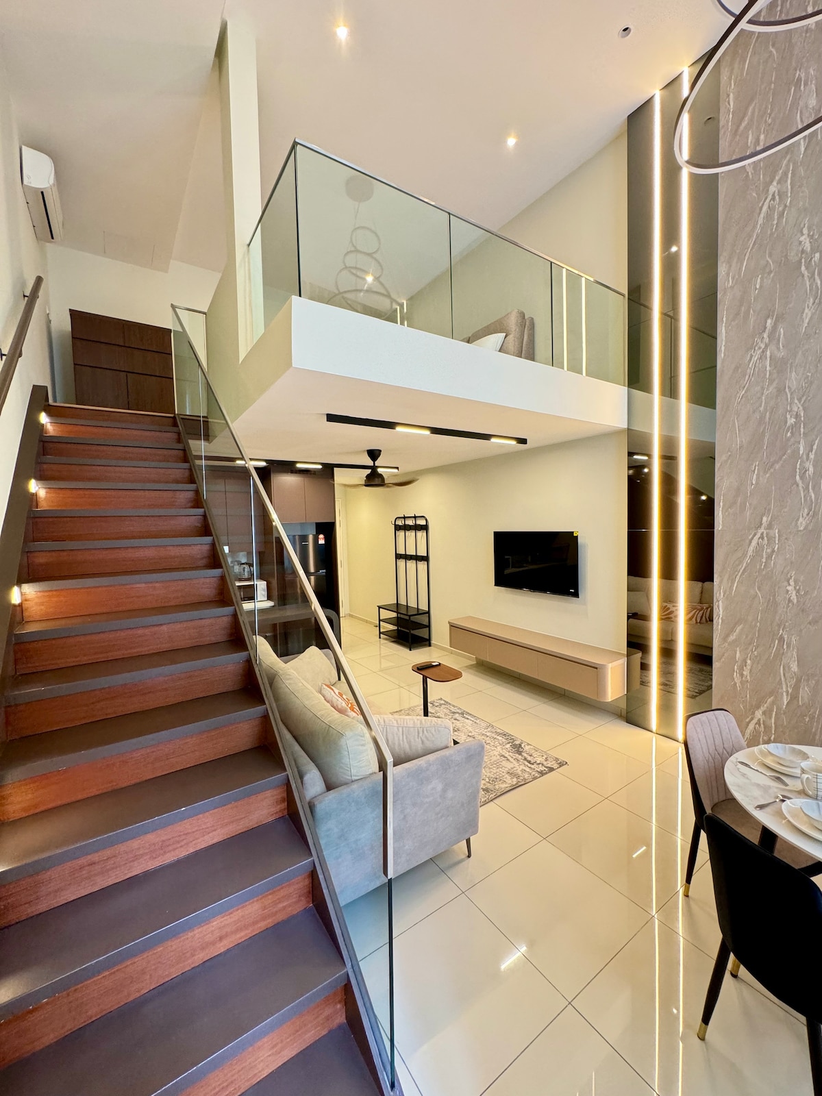歡迎來到Airbnb Ekocheras。这是一间吉隆坡市中心Cheras的中央商務區的複式套房。楼下LG就是Eko Cheras Shopping Mall可以轻松前往超市,餐厅,电影院等等 步行5分钟可到地铁站 开车到任何的商场都很靠近 10.3公里13分钟👉吉隆坡城中城 12.5公里16分钟👉MidValley 8.7公里19分钟👉柏威年广场 7公里10分钟👉Lalaport 4.6公里7分钟👉velocity 20.8公里21分钟👉Sunway Lagoon 21.5公里27分钟👉One U 👉🏻High Floor Unit With KlCC View 房源内备有📝 -Wifi -Nanoleaf Lights -Mashell Speaker -Projecter With Netflix Account -电视机 -LG饮水机(冷水/热水)✔️ -微波炉 -吹风机 -冰箱 -湿干冼衣机 -國際旅遊轉換器 -2张毛巾,2张面巾,淋浴乳/洗发露 -提供一个免费停车位 入住3pm 退房12pm