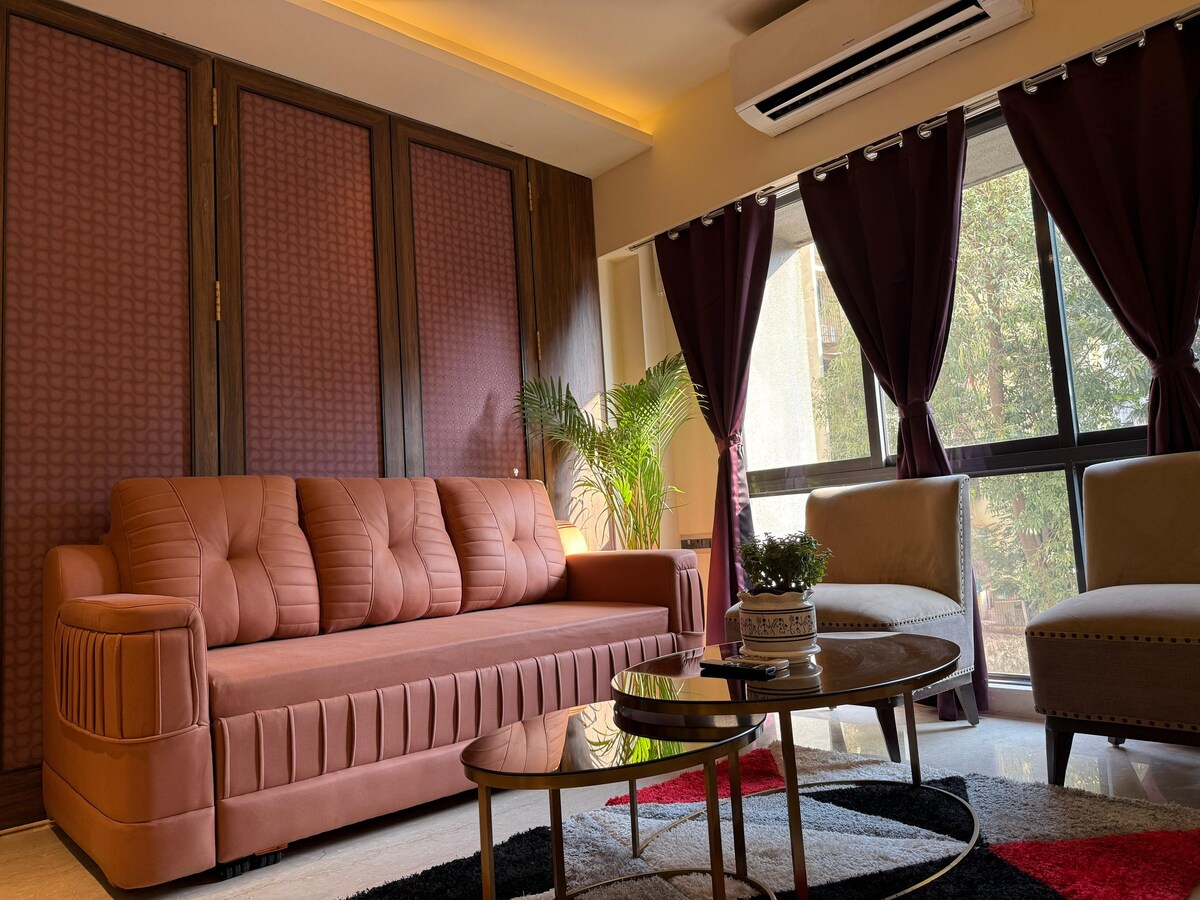 Premium & spacious 2BHK apartment perfect for up to 8 guests with 3 bathrooms and all essential amenities for a comfortable stay. Just 15 to 20 mins from Mumbai Airport and only 5 mins to Bandra Kurla Complex (BKC). Very close to Eastern & Western Highways and very close to the Aqua Metro Line for smooth connectivity. Surrounded by popular dining spots like King Chilli Chinese Restaurant and Theeram Kerala Cuisine. Stay once and you’ll love coming back to this apartment.