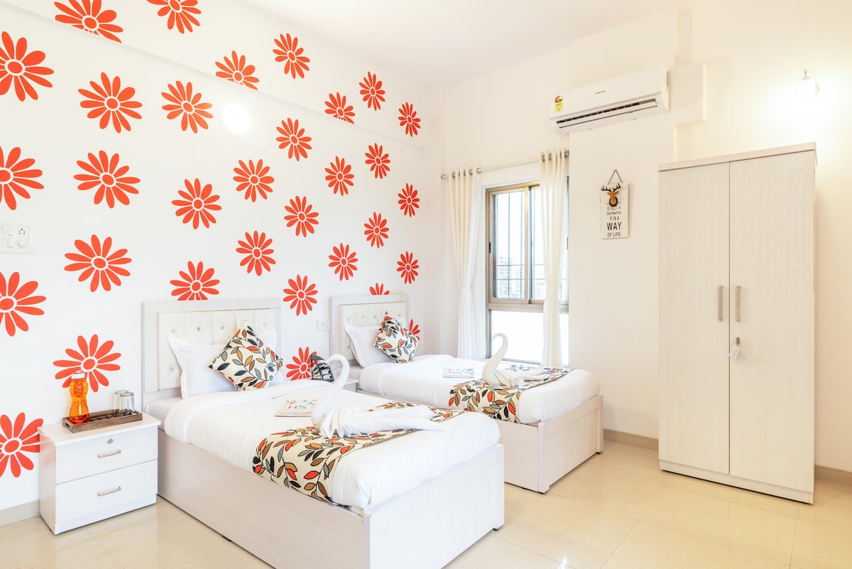 A simple and comfortable stay in Mumbai’s western suburbs, ideal for families or groups. The space has 3 clean, minimal rooms with attached bathrooms—2 rooms with double beds and 1 with a double plus bunk bed. There’s a small living area, a basic kitchenette, and access to shared spaces downstairs where breakfast is served and guests often connect. It’s may not be luxury, but it’s got everything you need to feel relaxed, rested, and right at home during your time in the city of dreams