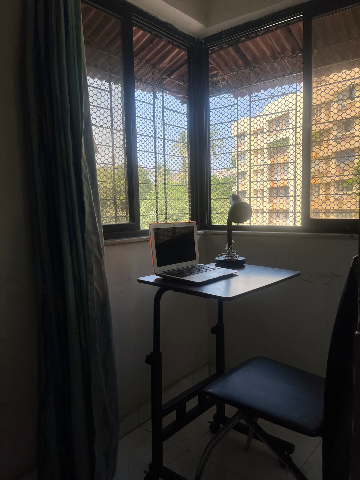 The terrace apartment is located in an urban market -a short walk from the famous Juhu beach .The apartment is open and spacious with a long terrace full of plants .. it's a quiet oasis in the middle of a hustling city .The house can comfortably accommodate two in a private bedroom and an additional person in the living studio space (if the hammock counts). You'll wake up to a view of green trees and open skies .. The home although in an old building has all the modern amenities one needs.