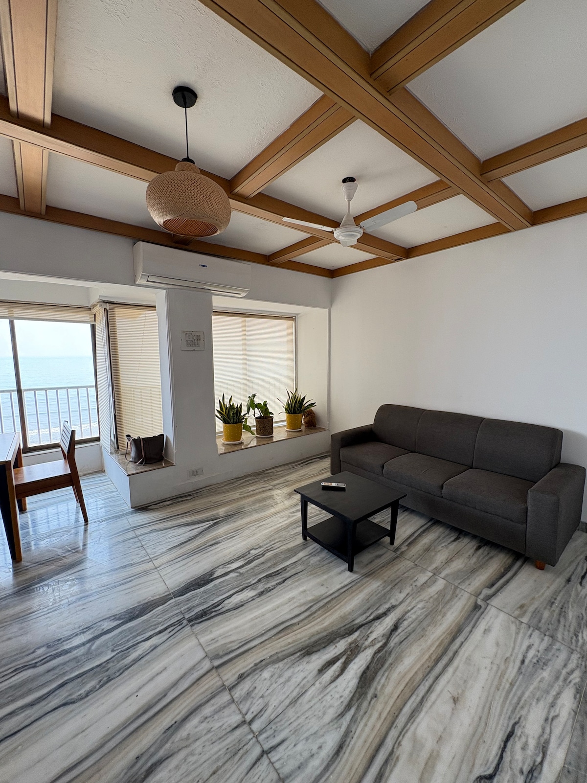 This massive 1BHK in Versova, Andheri West offers breathtaking sea views and expansive interiors. The spacious living room features floor-to-ceiling windows, while the large bedroom captures stunning sunsets. A modern kitchen and premium bathroom complete the home. Located near Versova Beach, cafés, and dining, it offers privacy, exclusivity, and top-tier connectivity—perfect for a stylish seafront lifestyle! Please note thar for shooting and house parties the rates are different