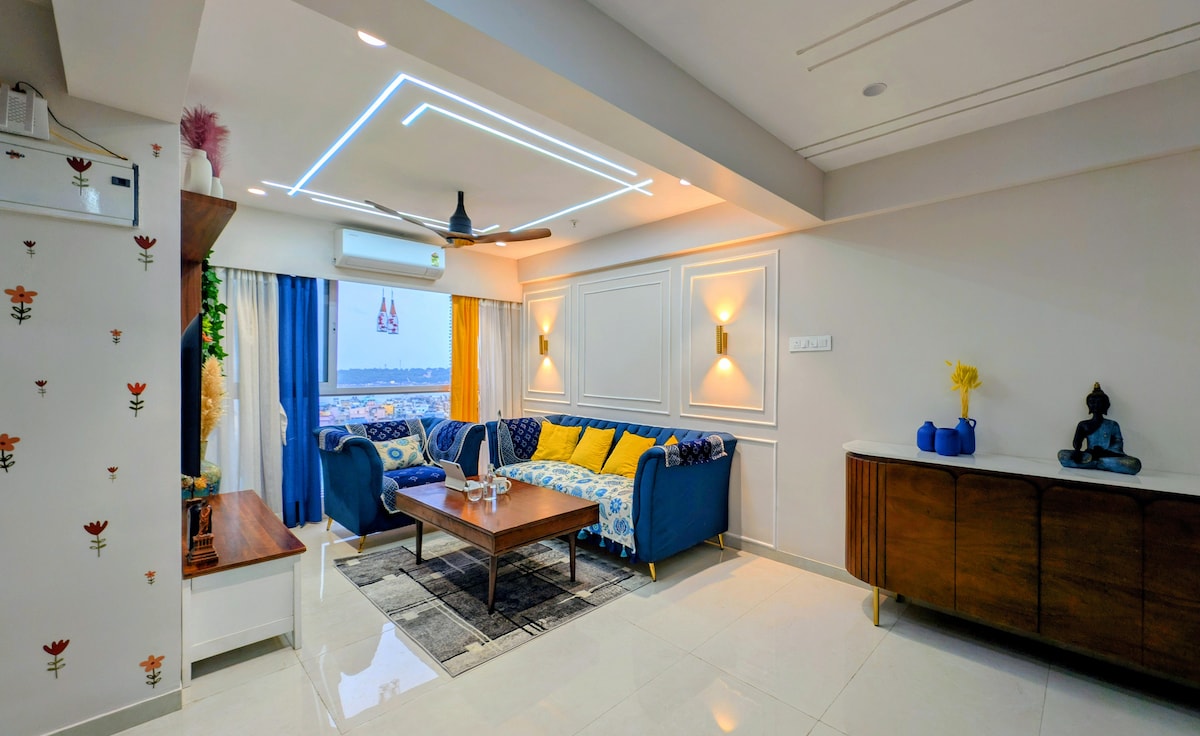 This stylish 2-bedroom homestay with fully equipped kitchen, high-speed WiFi, 43" smart tv is perfect for group trips, family holidays, twin couple hangouts and executive business travel, accommodating a minimum of 4 guests. If booked for 2 guests, access is limited to the lounge bedroom attached to the living room. The second bedroom remains restricted. To use both bedrooms, a nominal extra charge of INR ₹1599/night applies for 2-guest bookings and can be paid through Airbnb payment mode here.
