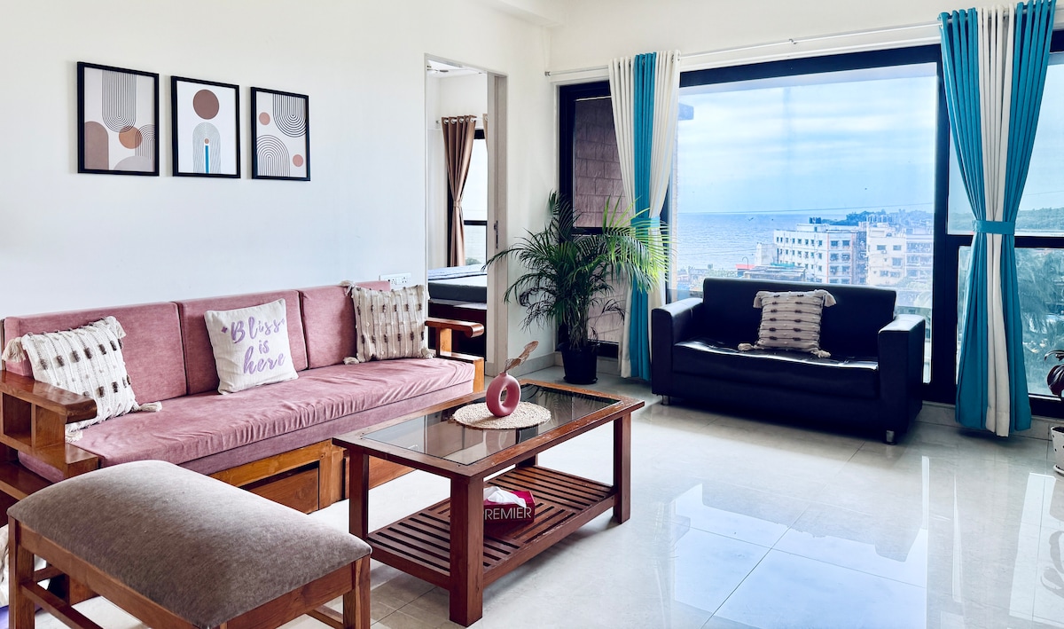 Soak up in the unreal sunset moments🌅 Bright, Airy & Modern! Blissville is everything Aesthetic✨ The decor of entire Space is Tasteful in Aqua theme which complements the Sea view 🩵 This 2bhk is our Home laboured with love and We invite you here to indulge in soulful moments with ur loved ones 💜 Enjoy Stunning Views of the entire City & the endless sublime ocean from every nook! Perfect for Long term stays, Staycation, Work-cation, Solo Travellers, Tourists & those who seek Luxe Leisure🌟