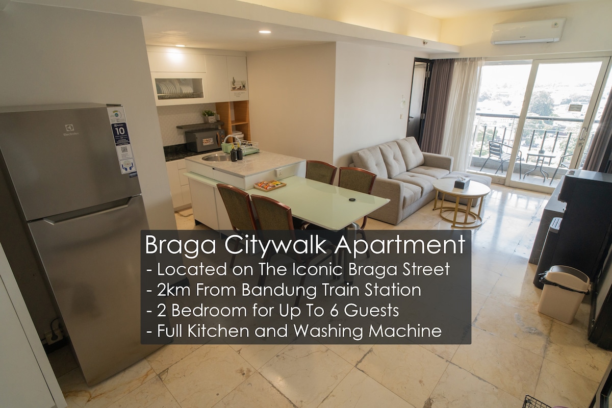 Experience Bandung from our homey 2BR apartment on the 15th floor of Braga Citywalk Apartment. Perfectly fits 6 guests, offering modern comfort and stunning city views. Located on the iconic Jalan Braga, you're steps away from trendy cafes, history, and nightlife. Ideal for families or groups seeking a central, vibrant getaway. Clean, cozy, and convenient. Your perfect Bandung home awaits !