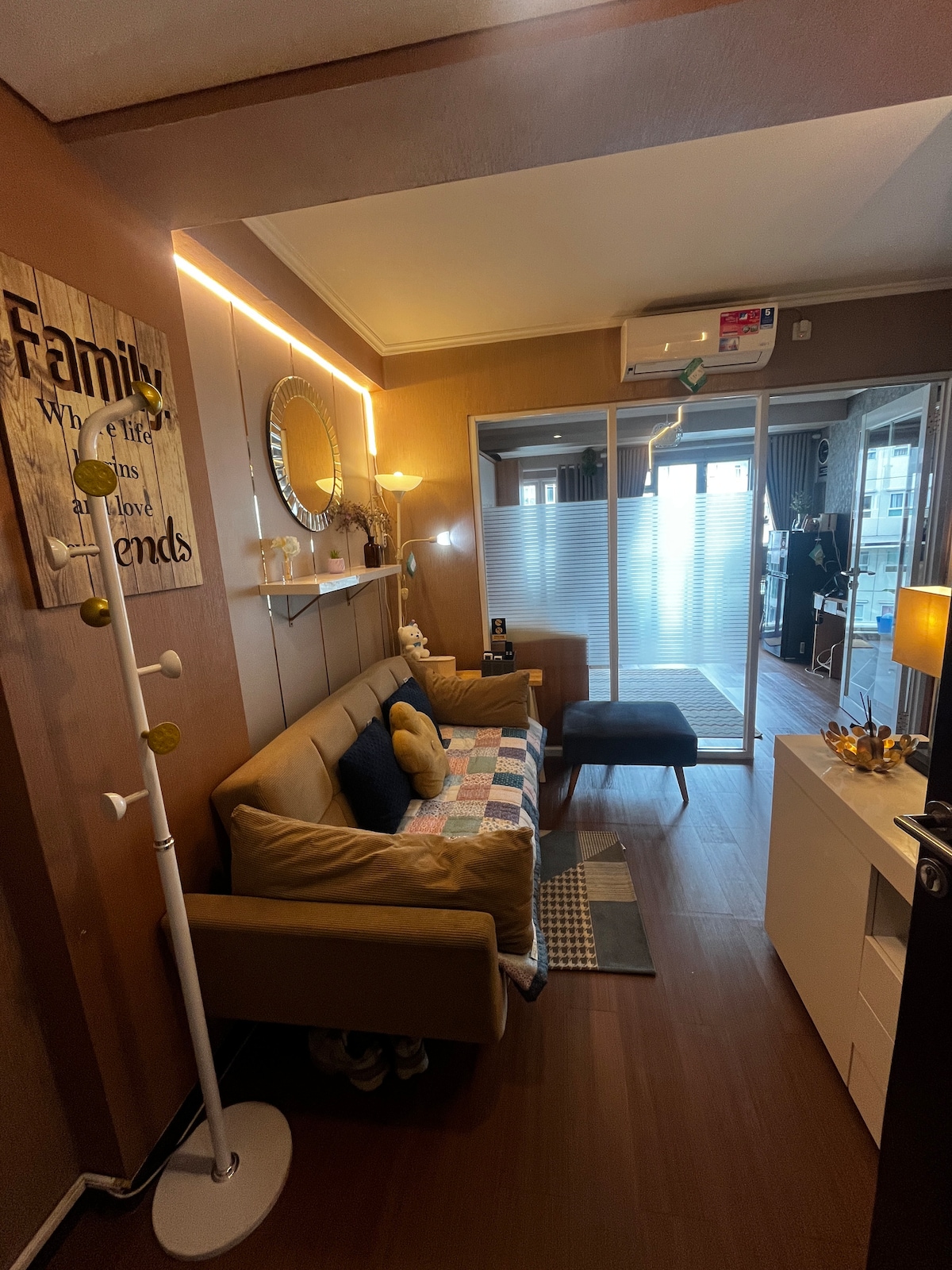 Escape to this 50sqm stylish 1-bedroom apartment with 2 side glass windows (corner type) in the heart of Dago, Bandung. Perfect for up to 4 guests, this space features a cozy living area, modern amenities, and a fully equipped kitchenette. Enjoy access to on-site swimming pool and gym facilities to stay active during your stay. Conveniently located near cafes, parks, and shopping areas, this apartment is ideal for both relaxation and exploration.